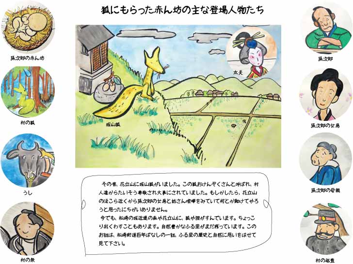 おーたさんの絵がとても雰囲気があるので、子供達も喜んで見て聞いてくれるとおもいます。早速この秋から紙芝居上映が始まります。孫次郎家族と赤ん坊、城山狐の運命やいかに!(照会パンフレットから引用)